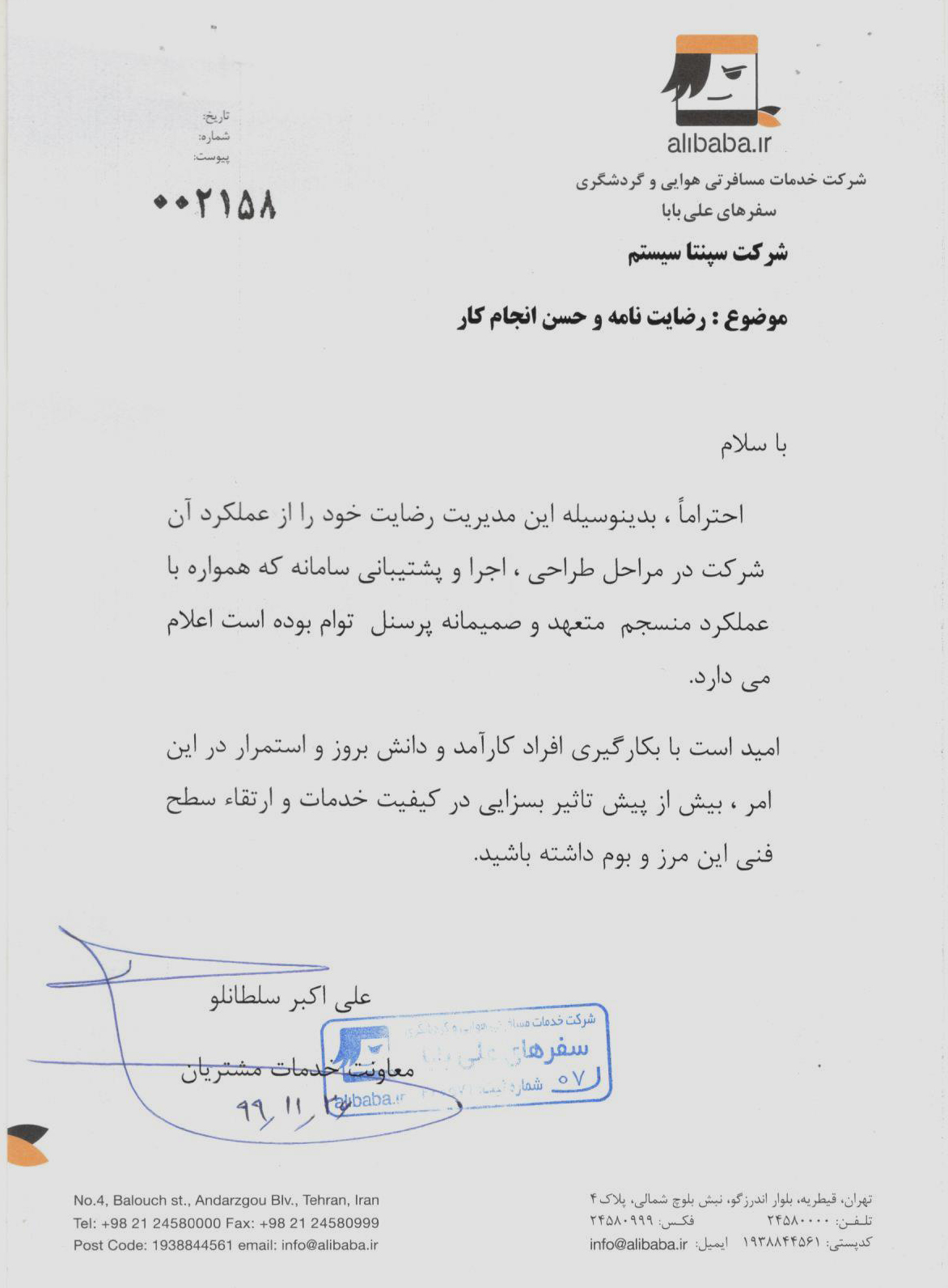 اعلام رضایت و حسن انجام کار شرکت خدمات مسافرتی و گردشگری علی بابا