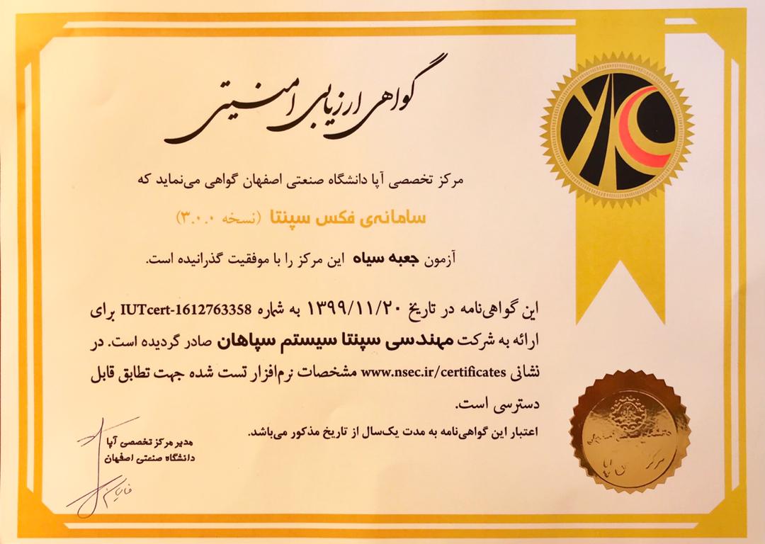گواهی نامه ارزیابی امنیتی ( آپا ) - سامانه فکس پیشرفته سپنتا