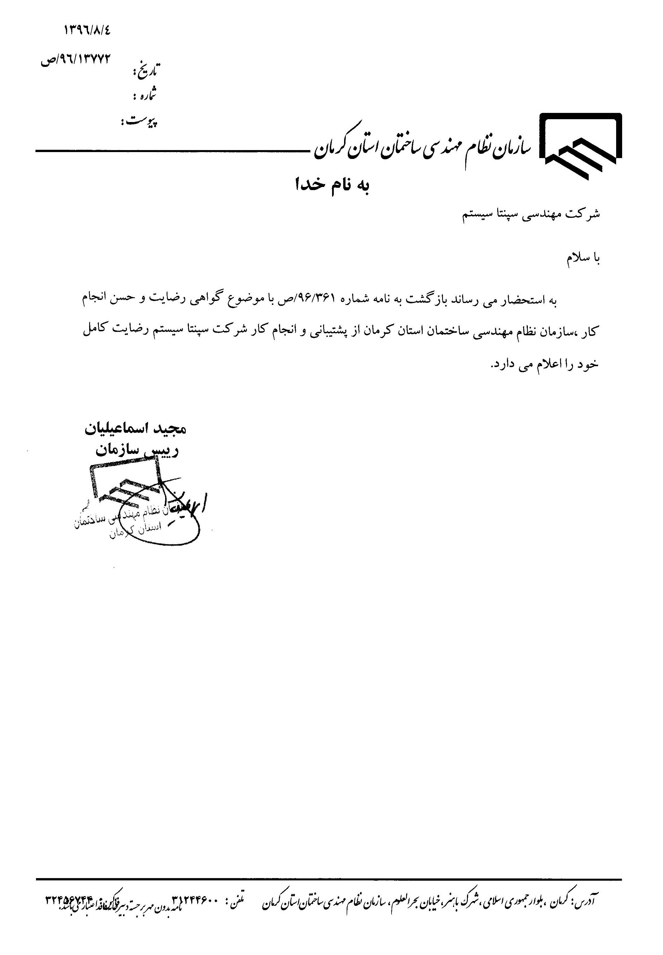 گواهی رضایت و حسن انجام کار - نظام مهندسی استان کرمان