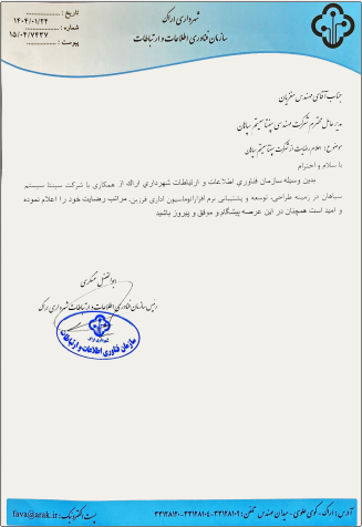 اعلام رضايت سازمان فناوري اطلاعات و ارتباطات شهرداري اراك از شركت سپنتا سيستم