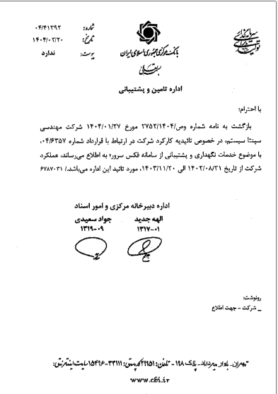 اعلام رضايت بانک مرکزی جمهوری اسلامی ایران از شركت سپنتا سيستم